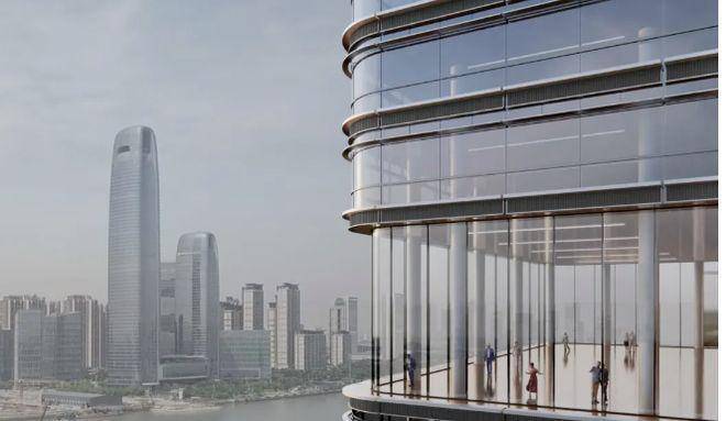 啟江 42 序 Avantura 基础配套走高端路线。占地面积约 7601m²,建筑面积约 56247m² ,位置在广州市金融城东区 AT091434 地块。容积率 7.4,虽然数值不算低,但好在户数少,仅可售 42 套 ,居住密度低。小区位于金融城东区,一线望江,楼高约 131.9 米,分为南北两座塔楼。外立面用木色陶板与全景玻璃幕墙,以 “曲水流觞” 的涟漪造型呼应珠江文脉,还融入垂直生态理念,打造空中绿岛与可呼吸的建筑肌理,从外观上就彰显独特与高端。
