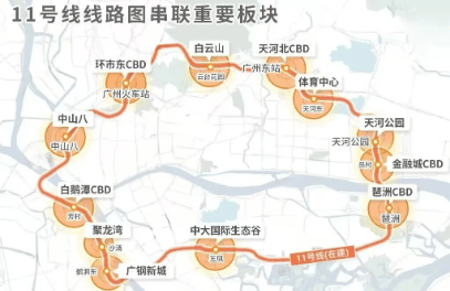 广州11号线是广州第一条超级环线,被誉为市中心的“换乘之王”,直接圈定了城市价值的“地段一环”。更重要的是,它实现了白鹅潭、如意坊-沙面、太古仓-广纸等珠江三岸的互联,串起了多个城市地标,为居民提供了极大的出行便利。
