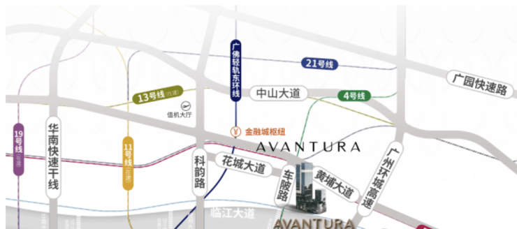 广州●啟江42序交通便利,项目临江大道紧邻地铁站和城市主干道,交通网络完善。项目所在金融城东区配备地面慢行系统及地下隧道环路系统,未来将与黄埔大道等城市干线无缝衔接,实现区域内部和外部高效通行。临江大道全线通车后,可快速打通珠江新城及金融城,提升CBD间的联动效率,为居民通勤和商务活动提供便利。