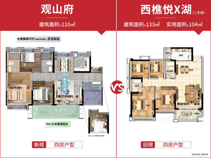 建面约 110㎡的四房户型,以奢阔尺度诠释品质人生。南北对流格局保证室内通风采光,U 型厨房科学动线方便烹饪。N + 1 房灵动空间可随心定制功能。约 3.7 米奢阔主卧套房开间,放下 2 米大床后仍能打造梳妆台与衣帽间。约 6.95 米超长阳台,拥有 IMAX 瞰景视野,优于西樵悦 X 湖建面约 133㎡户型,为业主呈现理想生活场景。