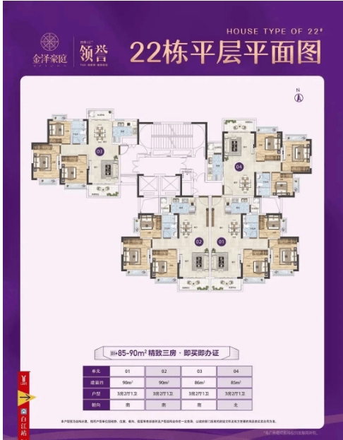 金泽豪庭在售户型以刚需为主,涵盖 85-114㎡三到四房,满足不同家庭结构需求。85-90㎡三房户型布局紧凑,空间利用率较高,客厅与阳台相连,采光通风效果好,主卧配备独立卫生间,保障主人居住私密性,适合三口之家;108-114㎡四房户型空间宽敞,除了主卧、次卧,还可设置书房或儿童房,灵活满足家庭成长需求,适合多人口家庭。