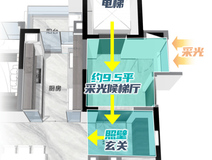 户型三开间朝南,为了获取更大面宽视野,项目还将全屋的窗地比做到38%。