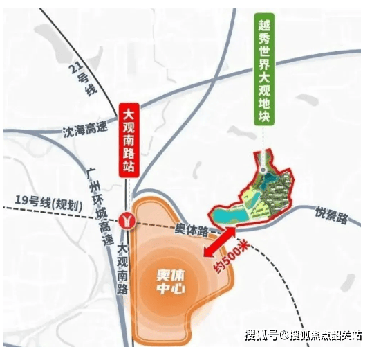 公共交通配套:目前距离项目最近的地铁为21号线大观南路站,约2公里路程,可通过公交、自驾快速接驳地铁,通达广州地铁网络,便捷出行。同时,板块交通持续升级,世界大观将新建一条道路,直接接驳奥体路与机场二高速,悦景路改造工程持续推进,未来公共交通与路网配套将进一步完善,出行更加便捷。