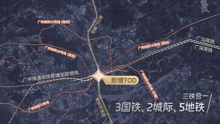 新塘TOD板块获批轨道交通新线,预计2025年建成后将直达天河CBD,车程缩短至25分钟。