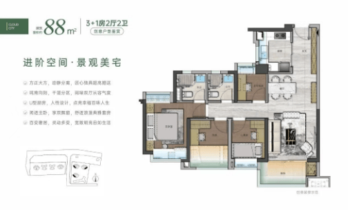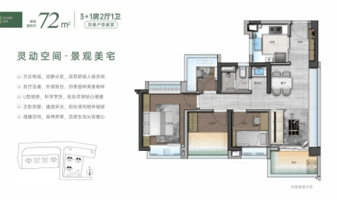 这些户型不仅注重实用性,还充分考虑了空间利用率和居住舒适度,特别值得一提的是73㎡户型能够做到四房设计,非常适合对户型有极致需求的家庭。