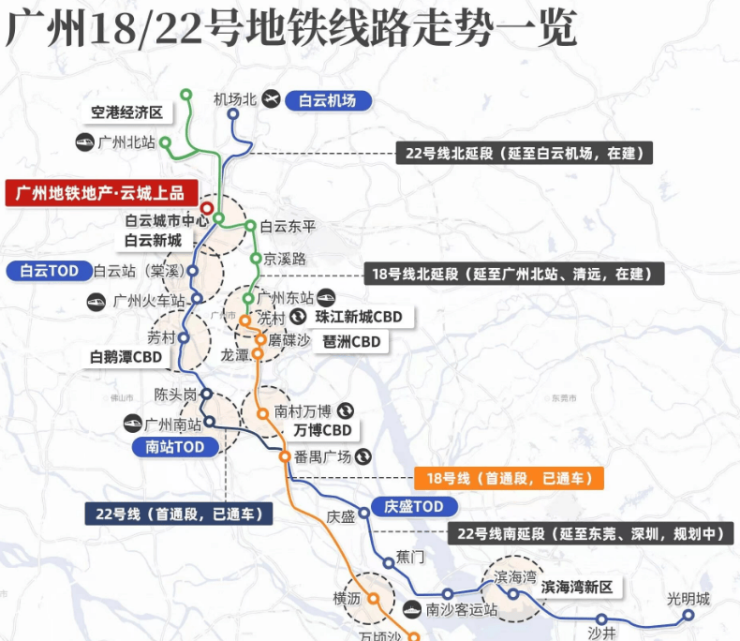 交通网络优化:随着地铁18号线和22号线的逐步建成,白云城市中心将成为连接广州各大CBD商圈的重要节点,进一步提升项目的交通便利性,吸引更多白领阶层入住。