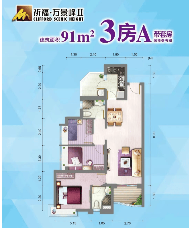 祈福万景峰提供了多种户型选择,以满足不同家庭的需求: