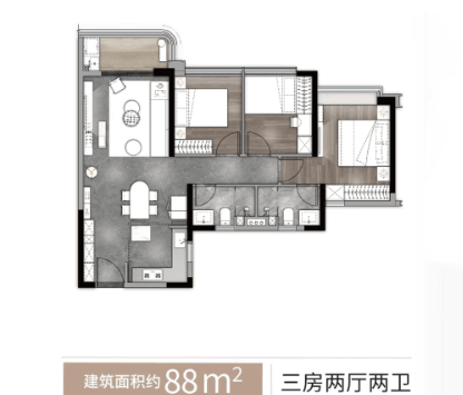 这些户型均采用了LDK客餐厨一体化设计,无分界通透聚厅,L形江景阳台,以及大面积玻璃幕窗与玫瑰金色铝板线条完美结合的设计理念,确保居住空间宽敞明亮且具有极高的观赏性。