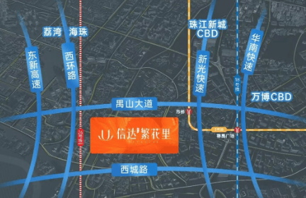 自驾:临近两大主干道——禺山大道和西环路,接驳东新高速可达荔湾、海珠,通过新光快速可直达万博CBD和珠江新城CBD,通达全城。