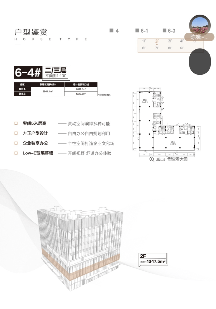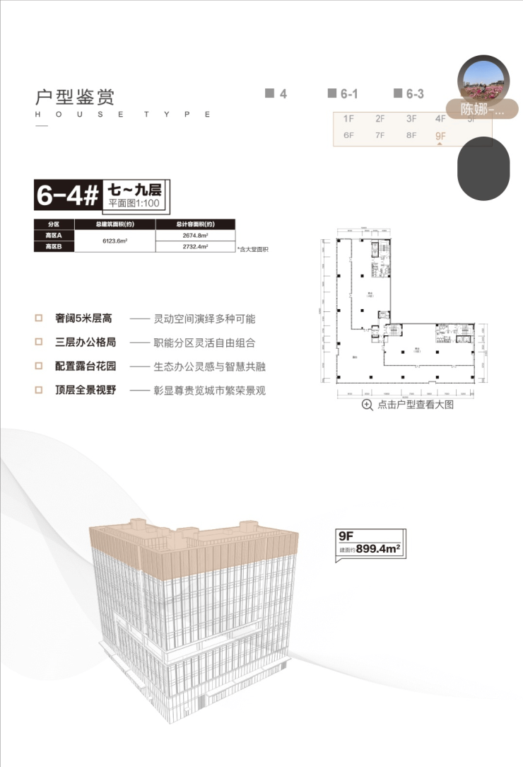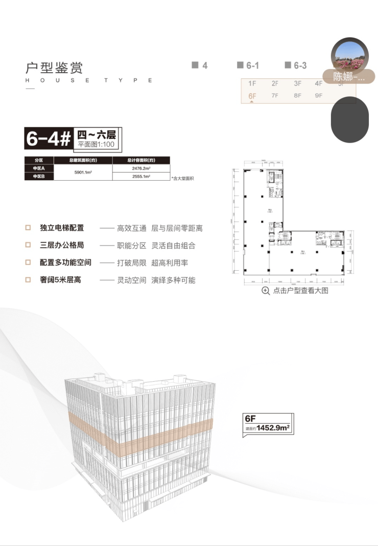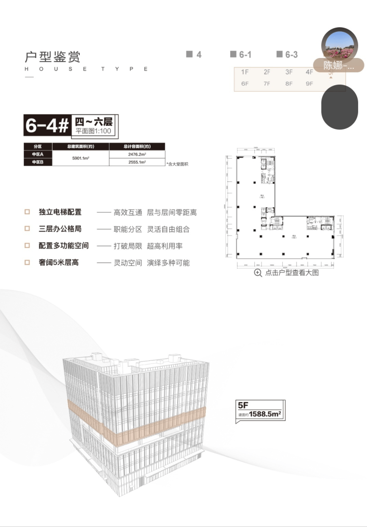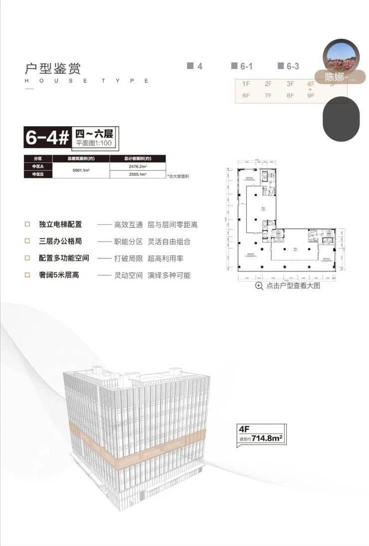 目前在售的2000 - 4000m²独栋小总部产品,为企业提供了独立、私密的办公空间。以保利汉溪大都汇【6 - 4栋】拼合总部办公为例,6 - 4栋为L型类独栋产品,共1.4万方,分为西面A区、东面B区,各自含有3套办公产品,共6套(一个单位一个产权,AB同区购买后期可打通)。办公区以低、中、高三区划分,2 - 3F为低区(1800㎡),4 - 6F为中区(2300㎡),7 - 9F为高区(2600 - 2800㎡),满足企业不同发展阶段的空间需求。大堂10米挑高设计,共6个大堂,分别专属于三个区域(建面约120 - 140㎡),配备两台独立电梯到达所属楼层,可明火的店铺(建面低区、高区约60㎡,中区约90㎡),为企业提供了高品质的办公配套。
