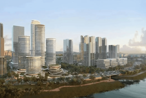 广州·鹏瑞1号由美国著名建筑设计公司KPF担纲设计,灵感源自波光粼粼的珠江。建筑外形圆润流畅,采用“外圆内方”的独特造型,既体现了现代美学,又暗含中国传统文化中“刚柔并济、和谐共生”的哲学思想。整个项目占地约5.42万平方米,分为南北两区,共规划有6栋建筑。南区包括T1至T4栋,而北区则是T5和T6栋,后者更是高达286米,成为了该区域的新地标。