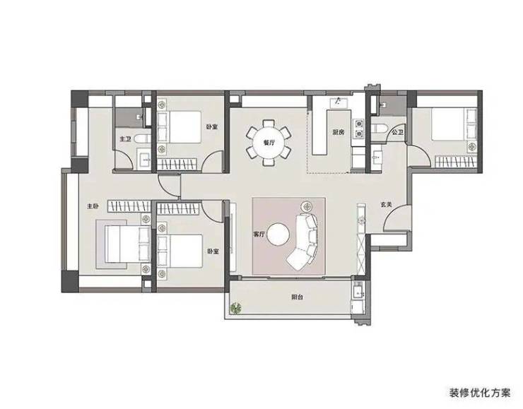 105㎡:二胎家庭,追求空间尺度与互动性;