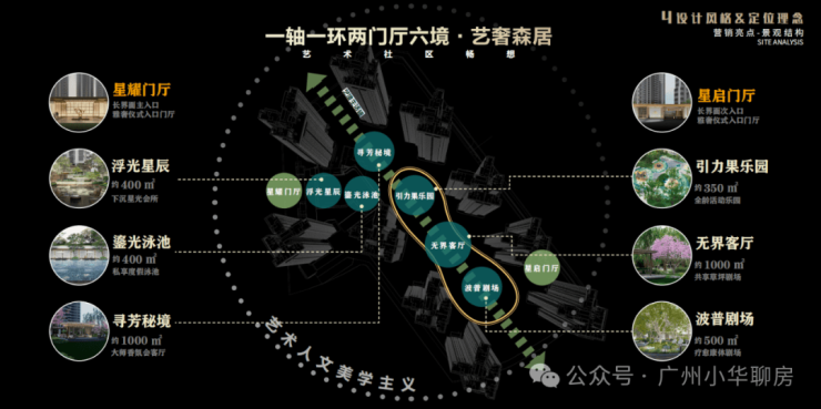 ②二期延续POD园林理念打造占地约1.7万㎡的一轴一环两门厅六境的艺术美学社区(香氛会客厅、全龄活动乐园、共享草坪聚场、体侧健身空间等)