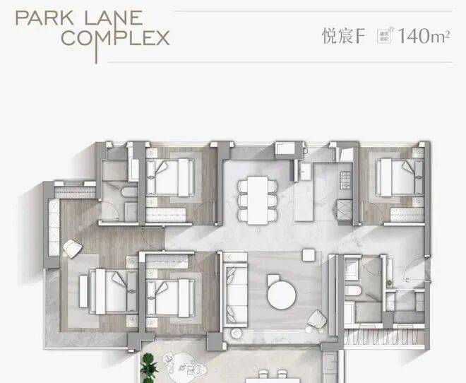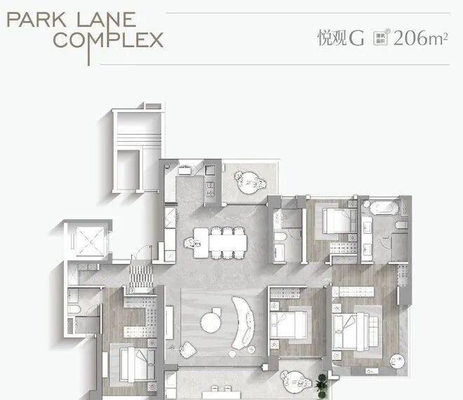 300㎡五房两厅四卫:得房率91.5%,3梯2户,双套房设计,约12米南向阳台(眺望长隆),主卧面积约40㎡(带独立书房+卫浴),适合家族式居住,首付门槛(7.0万/㎡×300㎡)×30%=630万,2027年12月精装交付。