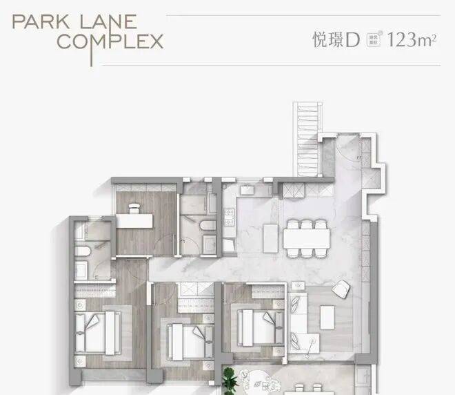 170㎡四房两厅三卫:得房率91%,南北对流,约28㎡主卧套房(带独立卫浴+步入式衣帽间),6.8米景观阳台(半赠送),客餐厅面积约45㎡,适合二胎改善家庭,首付门槛(6.2万/㎡×170㎡)×30%=316.2万,2027年6月精装交付。