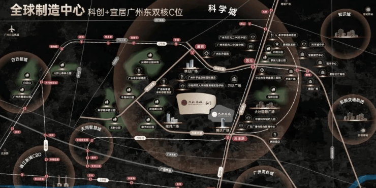 绝佳的地理位置:位于科学城核心黄金2公里地带,汇集了多个重要功能区。