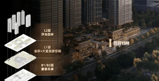 项目首创广州首个“11米抬高浮岛社区”,由国际知名景观设计公司JTL加特林打造。整体盖板抬高11米,不仅越过沿岸建筑屋顶,更将住宅起始楼层提升至20米以上,相当于普通小区6-7层视野高度,最大化江景视野。