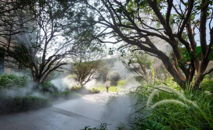 除装修智能化外,广州电建洺悦玉府在社区层面亦部署多重科技系统。园区配备雾森降温系统,在夏季高温时段自动喷雾,降低局部温度2–3℃;全域覆盖高清监控与电子巡更系统,结合人脸识别门禁,构建无感安防网络;儿童游乐区采用环保EPDM地垫,减少跌倒伤害;休闲座椅与廊架按人体工学设计,提升户外停留舒适度。