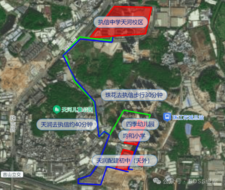 项目外部专属配建约 1.2 万㎡漫步公园,创新性加入农耕园、瓜菜棚等农趣体验区域,区别于普通市政公园,增加自然科普、亲子农耕体验功能,家长可以带着孩子近距离接触自然,体验农耕乐趣,丰富亲子休闲生活。周边市政公园资源同样丰富,步行 15 分钟可达 20 万㎡天河儿童公园,作为天河区规模最大的儿童主题生态公园,园区内设有林间攀爬区、科普教育基地、休闲影院等多元设施,是亲子周末出游的优质选择。