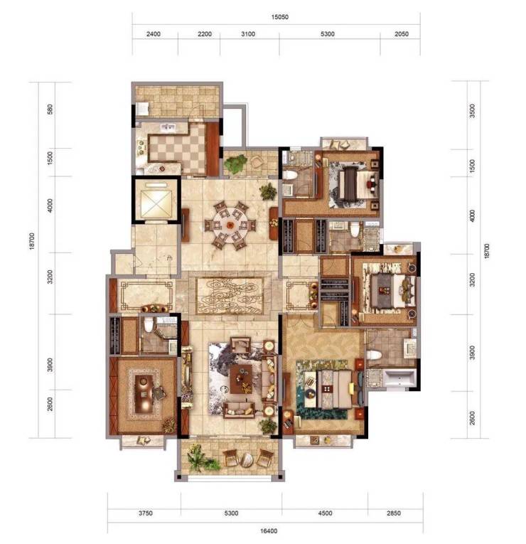 255㎡ - 四室两厅:三阳台、四飘窗,大空间生活体验。