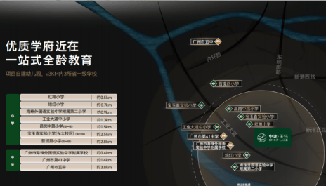 A2:项目配建幼儿园,3公里内涵盖宝玉直实验小学、红棉小学等优质学校,具体学区划分以当年广州市海珠区教育局官方公示文件为准,入学政策遵循属地管理原则。
