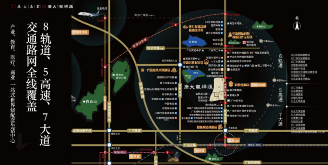 地理位置无疑是康大龙祥汇的一大卖点。距离14号线旺村站约900米,汤村站约700米,步行时间大约7-10分钟,属于真正的地铁盘。此外,即将建设的广州市活力创新轴快速路(北段),将大大缩短从知识城到天河金融城的时间至15分钟。虽然目前公共交通仍在完善中,但自驾出行非常便利,项目距离广河高速入口约2公里,前往珠三角其他城市也十分便捷。