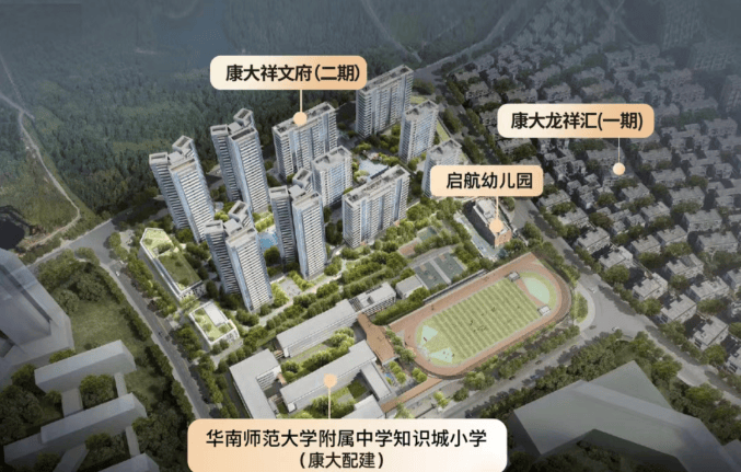 教育方面,康大龙祥汇的最大亮点在于其配套的华南师范大学附属中学知识城小学已经在2024年9月开学,并明确将康大龙祥汇纳入招生范围。小区内还有启航幼儿园(公办),已经开学,同样隶属于华南师大教育集团师资。这意味着业主的孩子可以在家门口享受优质教育资源。