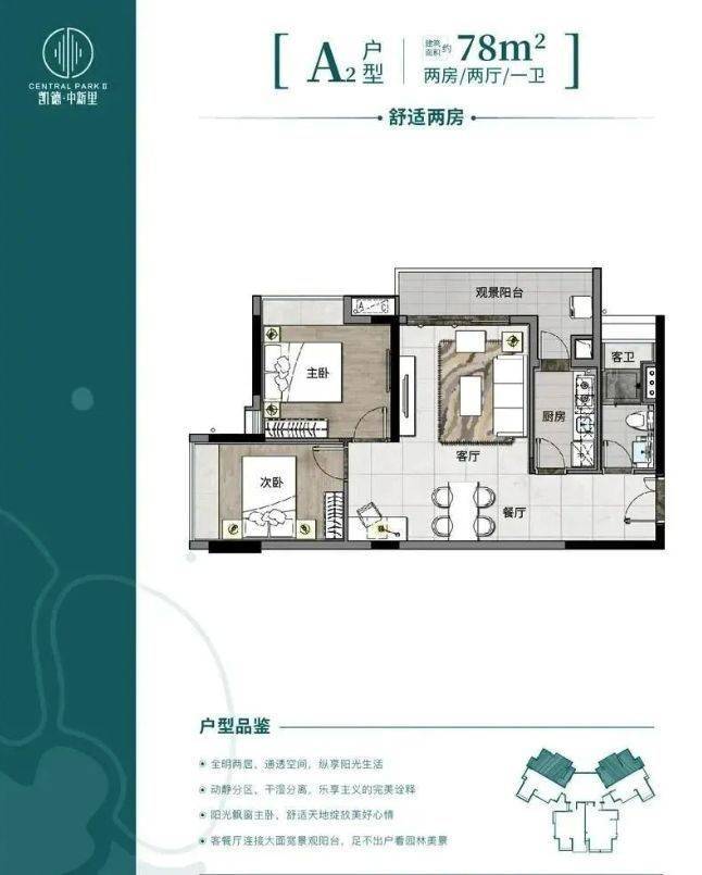 户型设计精妙绝伦,全方位满足不同家庭结构的需求。78 平的两房户型,精巧布局,空间利用率极高。客厅宽敞明亮,连接观景阳台,让阳光与清风自由穿梭,为家庭营造温馨舒适的氛围。卧室温馨舒适,尺度适宜,虽空间有限,但能满足年轻夫妻或小家庭的基本居住需求,是首次置业者的理想之选。