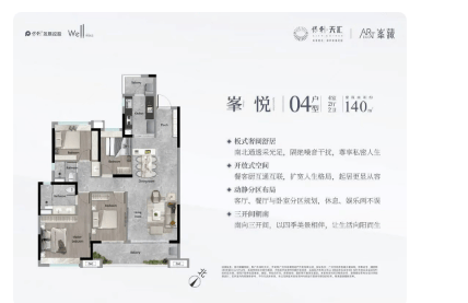 具体户型亮点纷呈:90㎡三房两厅一卫,刚需首选,南向布局,客厅连接 3.5 米景观阳台(部分户型望社区园林),主卧带飘窗,精装交付(含品牌家电),使用率超 82%,无浪费空间,适合年轻刚需家庭;120㎡四房两厅两卫,刚改主力,南北对流,LDK 一体化设计(客餐厨联动),南向阳台约 5.8 米(部分户型望奥体山体公园),主卧带独立衣帽间,使用率超 83%,适合三口之家;140㎡四房两厅两卫,中产改善,独立入户玄关(提升收纳与仪式感),双阳台(观景、生活分离),客厅无柱设计(可灵活改造),主卧套间带双台盆,使用率超 84%,部分高楼层可眺望智慧城城市景观,适合二胎家庭;160㎡五房两厅三卫,终极改善,双主套设计(满足多代同堂需求),南向阳台约 7.2 米(全景园林视野),精装标准升级(含智能控制系统),使用率超 85%,适合高收入改善家庭。所有户型均为精装交付,省去装修烦恼,部分楼栋为现楼,即买即住,大大缩短入住周期。