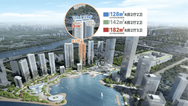 项目户型面积从130至290平方米不等,设计兼顾江景观赏与居住舒适性。所有户型均采用通透布局,保证充足采光及优质景观视野。高层江景户型可享360°环幕视野,北望内港湾,东北方向可观珠江及小蛮腰,东南向可俯瞰三江汇聚景观。部分大户型配备7米架空层及7米高盖板,增强居住隐私性与空间延展性。内部空间注重舒适性与功能性兼顾,部分户型配备独立衣帽间、全景阳台及奢阔套房布局,满足改善型家庭对高品质生活的需求,同时兼具投资价值和景观享受。