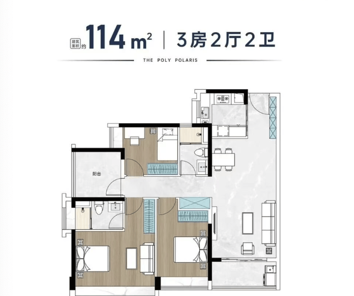 ✅ 112㎡三房两厅两卫: