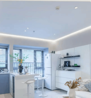 39㎡一室一厅:东向或西向,客厅无窗,厨房连通多功能阳台,采光通风略有欠缺。