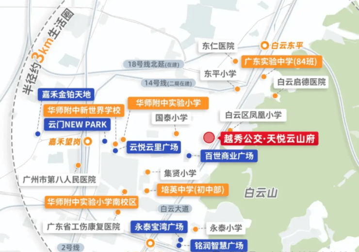 生活与教育配套的逐步兑现,让越秀公交天悦云山府的居住价值进一步提升。教育方面,项目自身配建一所9班幼儿园,满足学龄前儿童的教育需求;距离项目约750米的培英中学附属第三小学已正式开学,作为白云区的优质教育资源,为业主子女提供了优质的小学教育选择;此外,1.2公里内还有广东实验中学永平校区,3公里范围内涵盖华师附小、培英中学等11所优质学校,形成了全龄段的教育体系,覆盖从幼儿园到中学的一站式教育需求(具体入学政策以教育部门规定为准)。商业配套上,项目3公里内聚集了超200万㎡的商业集群,云门新公园、云悦里广场、百世商业广场等大型商场已开业,品牌餐饮、大型超市、五星级酒店等业态齐全,无论是日常购物、餐饮娱乐,还是周末休闲,都能轻松满足。医疗保障方面,驾车短时间内可抵达广州市第八人民医院(三甲)、广东省工伤康复医院等权威医疗机构,为家人的健康提供坚实保障。以上配套信息均来源于项目官方发布及政府备案资料,真实可查。☎️联系方式:越秀公交天悦云山府售楼部认证电话:400-6165-502(开发商直连,官方验证.解答项目规划、购房政策等问题)