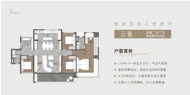 建面约143平方米:四房两厅两卫,豪华大气。