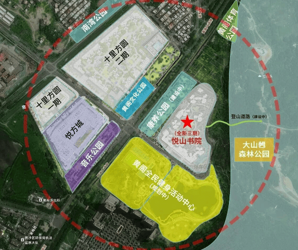 十里方圆悦山书院定位为**南沙中心区全维学府生态大城**,是集名校教育、旗舰商业、生态公园、品质住区于一体的标杆项目。项目择址南沙“十四五”规划中心城区核心位,踞守湾区中轴与城市发展主轴交汇点,占据区府桥头堡、南沙中心区黄金三角核心,北连庆盛枢纽、东接区府政务芯、南通明珠湾CBD,坐享三大板块发展红利,区位价值无可替代。