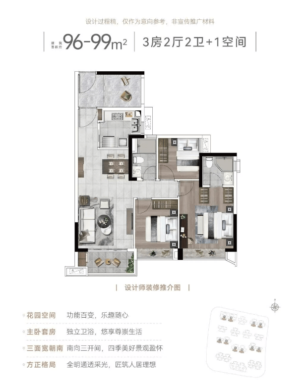 得益于小高层结构与合理公摊,所有户型使用率均超90%,在同区域产品中表现突出。虽非新规高赠送户型,但空间利用率高,居住体验扎实。