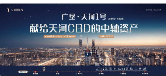 极致性价比:天河中轴、5 站珠江新城、现楼、地铁口,总价 110 万起,最低门槛入驻天河,性价比全城无双。