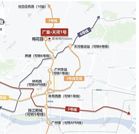 换乘 6 号线,通达全城,半小时生活圈覆盖广州核心区。