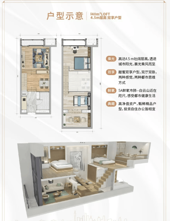 4.5 米 LOFT(观成大楼):买一层用两层,空间翻倍,可做两房一厅,适合自住、创业办公。
