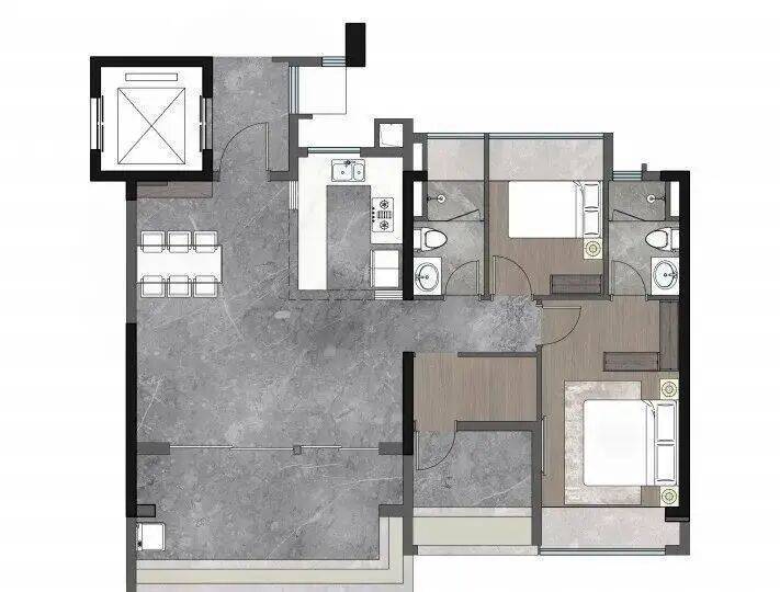 厨房同样采用中西双厨配置,U型中厨满足日常烹饪需求,岛式西厨适合举办家庭派对、朋友聚会,既能满足业主的烹饪需求,又能彰显生活品味。此外,该户型还配备了独立书房和多功能室,独立书房适合办公、学习,多功能室可以根据需求改造成健身房、影音室、儿童游乐室等,满足业主的多样化需求。