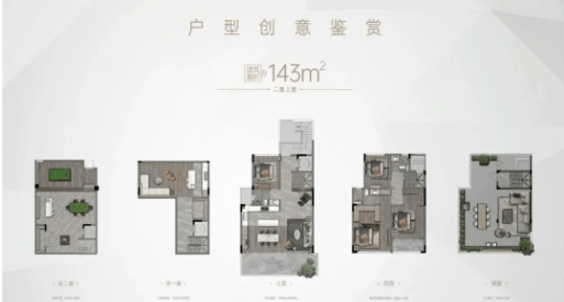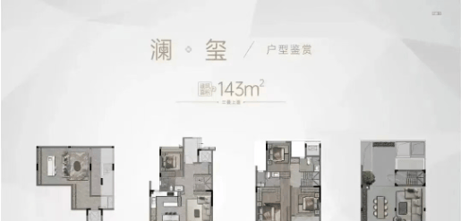 项目主力户型为约143平方米的大平层及叠墅产品,整体以改善型家庭为主要使用对象。户型设计强调南向采光、空间完整性与功能分区合理性,客餐厅尺度舒展,卧室区私密性良好。