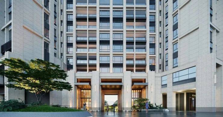 项目作为广州城投“公馆系”的迭代作品,采用了极具辨识度的“庄重典雅与现代极简融合”风格。外立面以大面积三层中空Low‑E夹胶玻璃搭配进口石材及香槟金色铝板,呈现出极具艺术感的“玻璃幕墙与金属线条”立面效果。楼栋排布呈半围合式布局,确保每一户都能拥有南向或东南向的景观视野,彻底告别“兵营式”的压抑感。