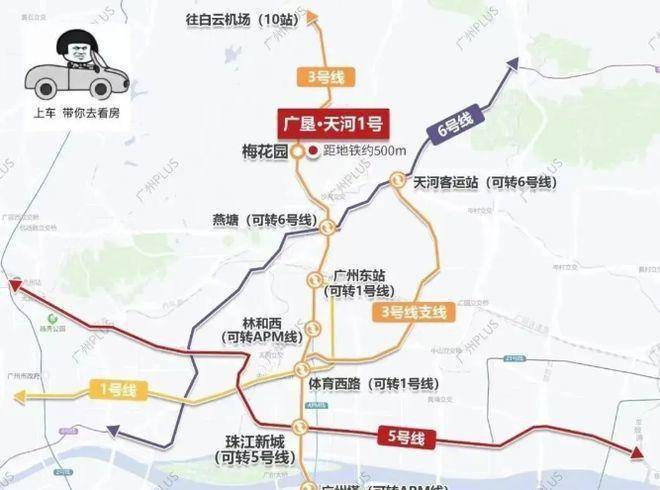 交通方面,项目西侧约 400 米即达地铁 3 号线梅花园站 B 出口,两站到广州东站枢纽,五站畅达珠江新城 CBD。同时,紧邻广州大道主干线,东向 2 公里衔接沙太路立体交通网,无缝对接环城高速等城市要道,半小时通达全城,1 小时畅达粤港澳大湾区核心城市。