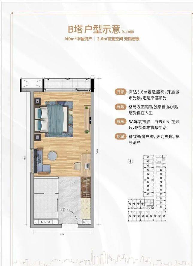 观云大厦行政公馆(36 - 43㎡):3.6 米层高,星级酒店式精装,可用于商务接待、长租自住或资产配置,满足不同需求。
