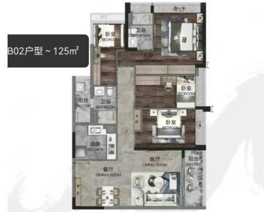 100–140㎡:四房大户型,主卧套房、双卫配置,满足多孩家庭或改善需求。