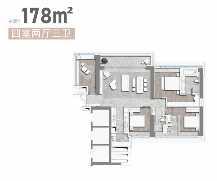 推出200套房源分别是1#泓座和3#玺座,有130-178-243㎡三种户型。