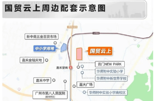 国贸云上位于白云区嘉禾望岗板块,直线距离嘉禾望岗地铁站约500米——这是广州北部最重要的交通枢纽之一,汇聚2号线(直达海珠)、3号线(贯通天河)、14号线(通达从化),无论去珠江新城、体育西路、广州东站还是白云机场,都极为方便。