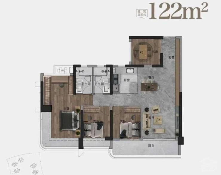 122㎡四房是改善家庭的首选,单边位设计,6.6米南向阳台连通客厅,采光充足、视野开阔。老人可以在阳台侍弄花草,孩子在客厅玩积木,互不干扰,完美兼顾了老人和孩子的需求。该户型空间布局合理,四个房间大小适中,可满足三代同堂的居住需求,也可作为二胎家庭的改善之选,让每个家人都能拥有独立的空间,提升居住舒适度。