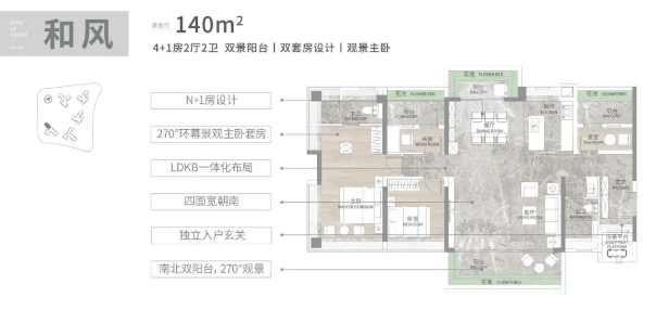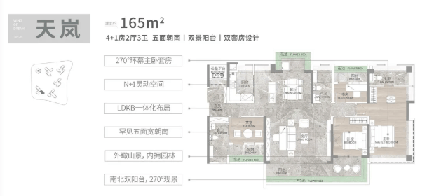 对于追求极致享受的买家,建面140平方米和165平方米的户型更是不可多得的选择。140平方米户型南向采光面达到了惊人的15.7米,南北双阳台设计,主套配置270度折叠屏飘窗,将景观引入室内每一个角落。而165平方米的大平层,更是将奢华演绎到极致。双阳台南北对流,朝南面宽达到17.4米,近9米的L型景观阳台,仿佛将整片山景拥入怀中。中式厨房加独立西式岛台的设计,满足了中西合璧的烹饪需求。双主套设计,让三代同堂的家庭也能拥有各自的私密空间,互不干扰。