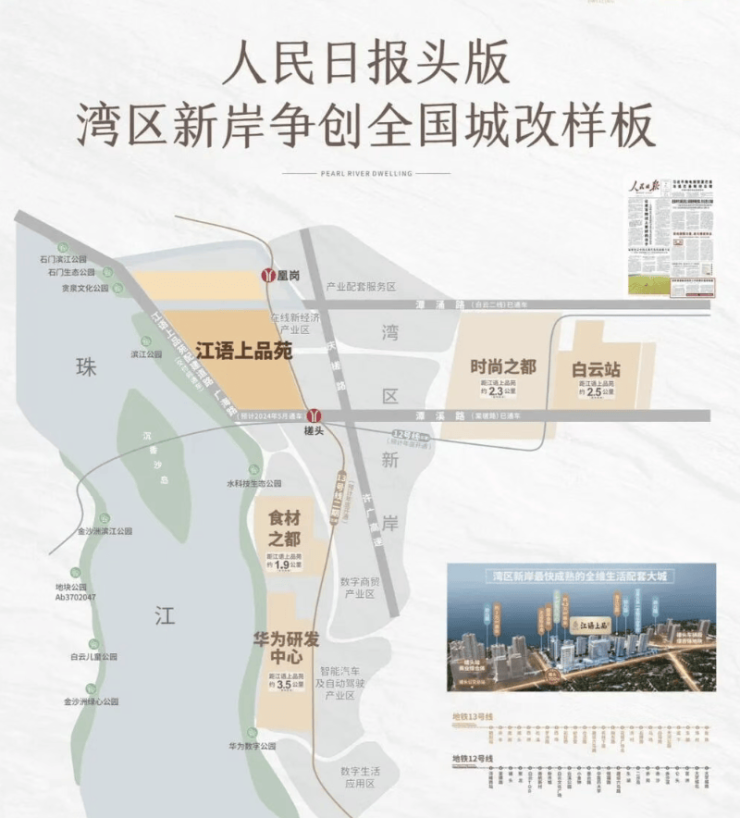 江语上品苑由广州地铁(TOD综合开发专家)与中交城投(世界500强第63位)联合开发,核心定位为“白云江景豪宅·12+13号线双地铁·培英学校旁住区”,纳入《湾区新岸(罗冲围)片区发展规划》重点标杆项目。